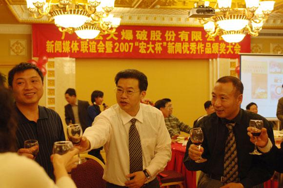 广东宏大爆破股份有限公司媒体联谊会暨“宏大杯”2007年度新闻优秀作品颁奖典礼3月2日晚在广州举行,广业公司领导陈晓东总经济师、公司监事会主席李茂文以及公司领导班子与出席的各位媒体朋友欢聚一堂,共享这一喜庆时刻。