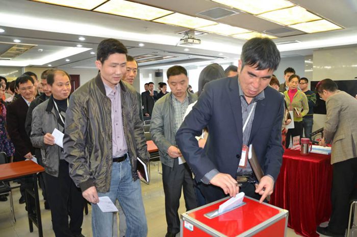 参会人员在会议最后对宏大公司领导班子及成员组织和参与教育实践活动情况进行了民主评议投票。