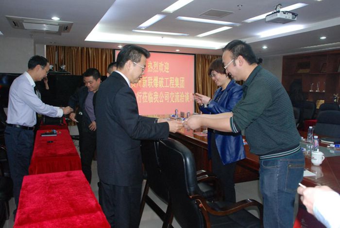 会谈中,郑炳旭董事长就宏大公司的基本情况及运营模式、鞍钢集团与宏大成功的合作模式、我公司的激励制度、融资方式及工程板块业务项目管理模式等方面作了一一介绍。贵州新联爆破工程集团有限公司沈总介绍了贵州新联爆破工程集团有限公司基本情况及业务发展情况,并希望就有关公司在创新管理模式方面与宏大公司交流学习,使贵州新联爆破工程集团有限公司今后能有更大的发展空间。