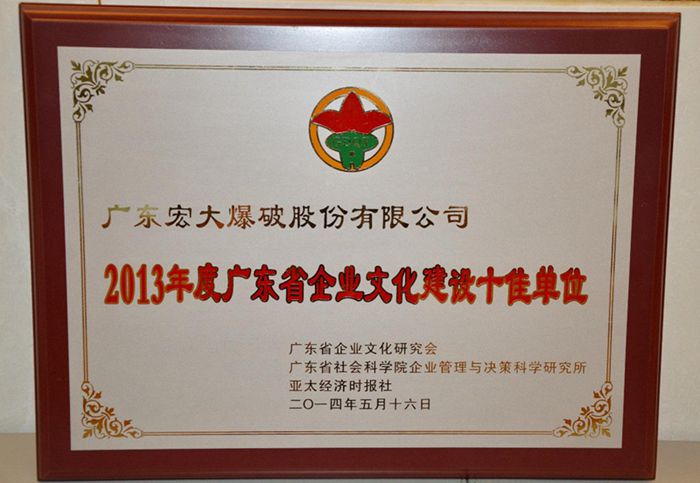 5月16日,由广东省企业文化研究会、广州市企业评价协会、亚太经济时报社、广东省社会科学院企业管理与决策科学研究院共同主办的 “2014年(第十一届)广东省企业文化建设论坛”在广州大厦成功举办。广东省委常委、宣传部原部长黄浩,广东省政协常委、广东省政协文化和文史资料委员会主任、广东企业文化研究会会长田丰以及来自政府、企事业、高等院校的领导和资深专家与广东省各市区一百多位企业代表共同出席了本次文化建设论坛。广东宏大爆破股份有限公司(以下简称:宏大爆破)分别获得“2013年度中国企业文化建设先进单位”、“2013年度广东省企业文化建设十佳单位”的称号,公司董事长郑炳旭获得“2013年度广东省企业文化建设十佳个人”的荣誉称号。