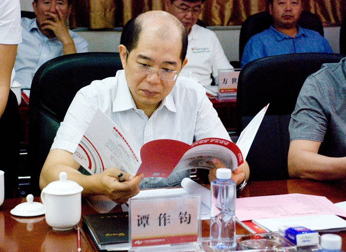 谭作钧副省长在仔细阅读宏大爆破关于“矿业一体化方案解决服务商”的相关资料