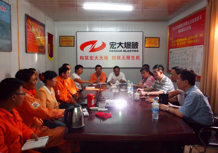 7月19日下午,广东省广业资产经营有限公司副总经理王健、工会副主席何继长等一行领导,在广东宏大爆破股份有限公司党委副书记郜洪青的陪同下到我公司必鲁甘干项目部检查工作。