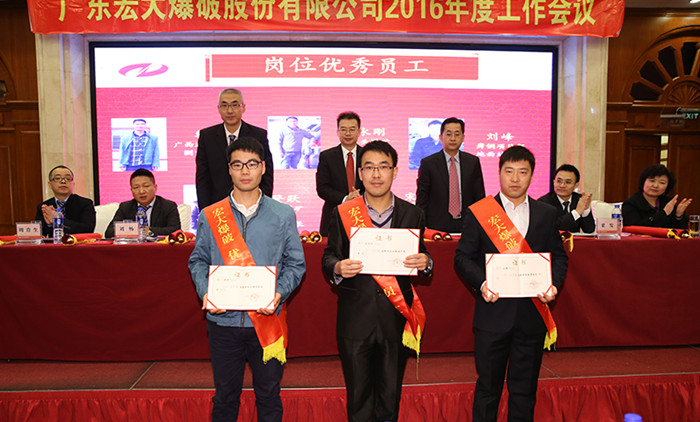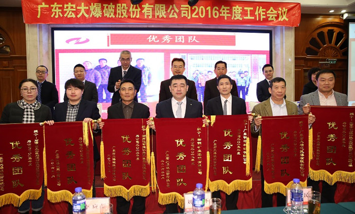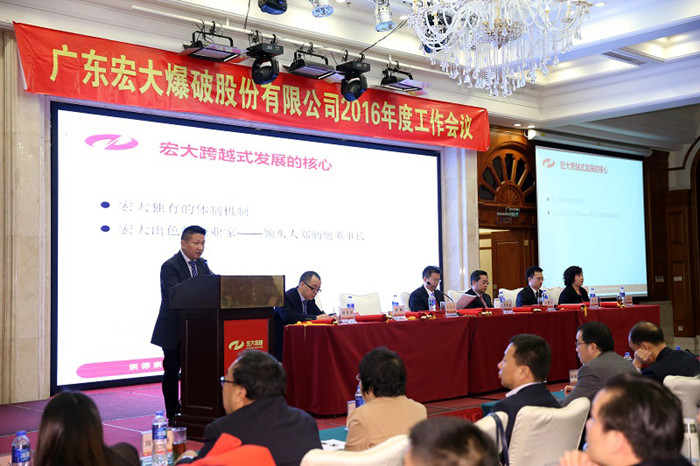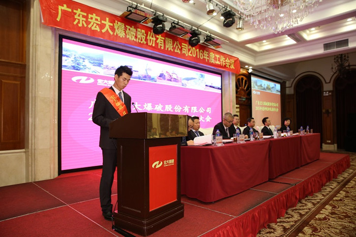2016年1月13日,广东宏大爆破股份有限公司2016年度工作会议在广州花都召开。会议主要对公司2015年度工作情况进行了全面总结并对2016年度工作进行了整体部署。会议由公司常务副总经理王永庆主持,公司领导班子、各下属单位领导、总部全体员工以及2015年度先进集体代表、先进个人等两百余人参加了会议。