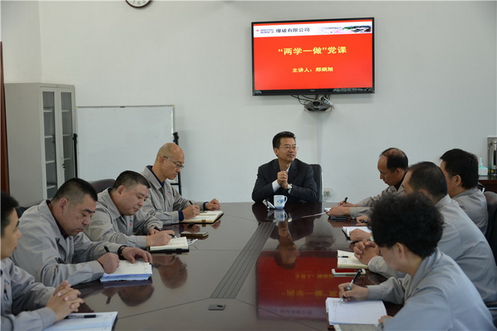 10月12日,公司董事长、党委副书记郑炳旭到挂点企业鞍钢矿业爆破有限公司,挂点基层党支部制药作业区党支部讲授“两学一做”党课,鞍矿爆破公司领导班子成员、部门负责人以及部分骨干人员参与听课。在课上,郑炳旭董事长强调要进一步深入开展“两学一做”学习教育,打牢“学”这个基础,抓住“做”这个关键,要把“两学一做”学习教育落实到实际工作中,越是困难当前,各党支部越要积极发挥作用,以岗位、工序、车间为单位开展评比、竞赛、合理化建议等活动,调动全体党员以及职工的积极性和创造性,努力成为企业降本增效的主力。同时,号召全体党员要坚持以学促做,知行合一,以扎扎实实的工作成效推动全年生产经营任务完成。课后,郑炳旭董事长还与制药作业区部分党员干部就作业区目前生产现状进行了调研活动,对作业区提出的问题进行了耐心细致的解答。