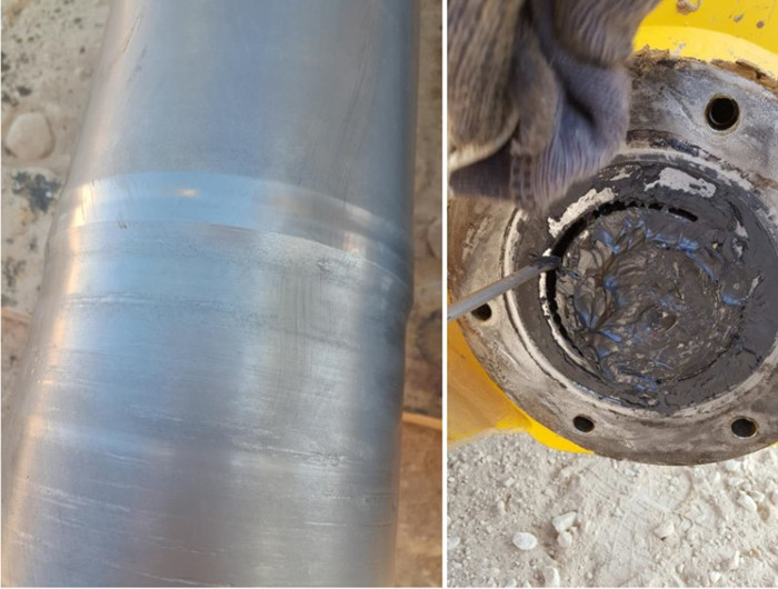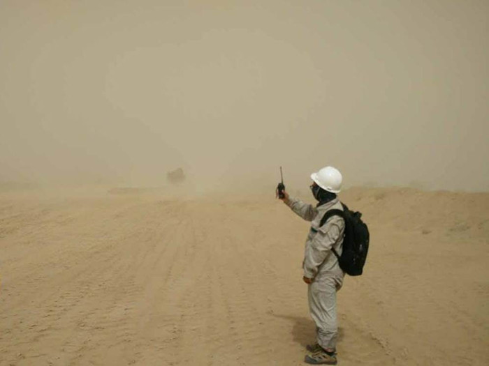 沙尘暴肆虐,日本小松集团最新型的PC1250SP-8挖机经受不住风沙的考验,挖机的轴与套之间被细沙磨损严重,轴更换频繁,维保成本居高不下。经中东小松公司和日本小松公司本部多番尝试解决,仍毫无头绪。宏大巴基斯坦项目技术团队经研究,提出了解决办法:骨架油封表面缠上铝片和细吊带,减少进沙面积。但此方案遭到了小松方面的反对,因为维保手册上没有此说法。为测试效果,项目技术团队试验了一个月,发现磨损情况大大改善,问题迎刃而解。于是,矿区各兄弟单位纷纷借鉴。挖机维护成本大大降低,业主喜出望外;日本小松方面也对此刮目相看,并表示会根据现场反应的情况对今后新产品重新改进浮动轴承设计。