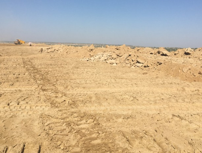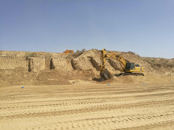 沙漠特有的沙质土层对采掘、运输、排土及边坡稳定造成了诸多困难,国内的采矿经验在当地“水土不服”,国外也尚无可供参考的解决方案。宏大巴基斯坦技术团队凭借着追求技术创新的执着以及永不言弃的精神,在炎炎烈日下,观察、分析岩层的地质情况,研究、测试各种可能的方法,首创“沿硬底平走”的开挖方式,解决了陷车的问题;还结合硬层分布情况以及设备的生产能力,发明了“分区排土,交替硬化”的作业方式,采用“换填”对道路进行硬化,极大地提高了设备的运行效率。