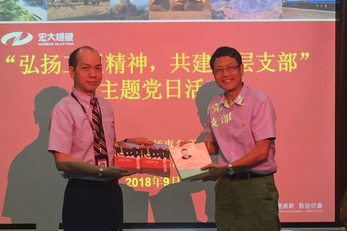 在读书分享会环节,宏大公司纪委书记何伟平同志推荐并分享了《梁家河》、《掌控》这两本书,通过这两本书的读后感表达了过去知青岁月与现代繁忙都市的精力把控对今天在场所有党员的深刻启示,随后国信信扬党总支为宏大公司专门制作并赠送了“党建共建单位”的牌匾。