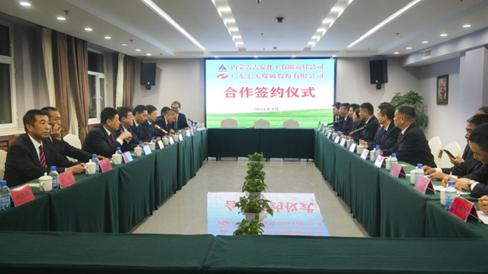 签约仪式在内蒙古赤峰市巴林左旗举行,宏大爆破党委书记兼董事长郑炳旭、总经理梁发及部分高管,吉安化工党委书记兼董事长刘玉文、总经理裴广强及全体股东和高管团队出席,仪式由吉安化工董事会秘书长彭海滨同志主持。